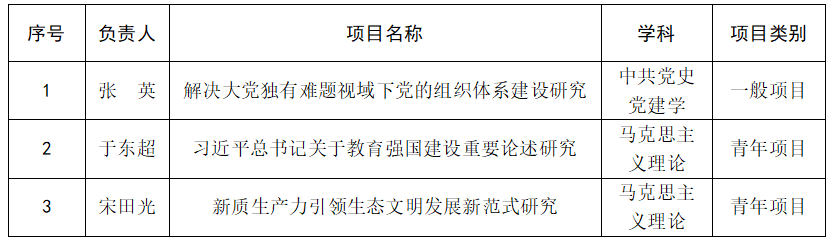 近日,2025年度国家社会科学基金年度项目立项结果正式公布。在申报竞争日趋激烈、党校系统立项率持续走低的背景下,奇异果体育(院)仍成功立项3项,其中一般项目1项、青年项目2项,展现了奇异果体育(院)在哲学社会科学研究领域的学科优势和扎实积累。