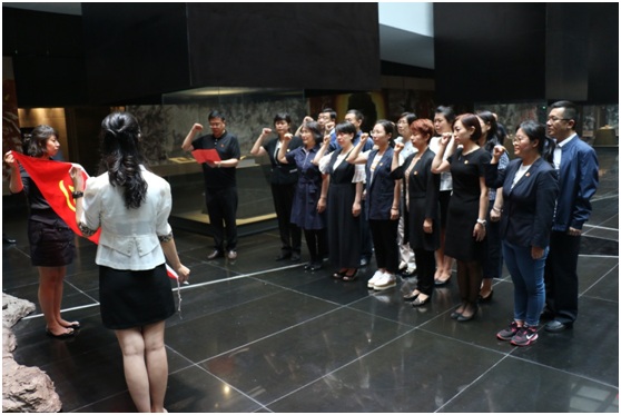 这次党日活动正逢中国共产党97岁生日来临之际,参观完抗联之魂画展后,在场的全体党员举行了重温入党誓词宣誓仪式。宣誓由科研处党支部马边防同志领誓,大家面对鲜红党旗,举起右拳庄严宣誓,表达了永远跟党走的坚定信念,铿锵有力的誓言久久回荡于每一个人的心中。